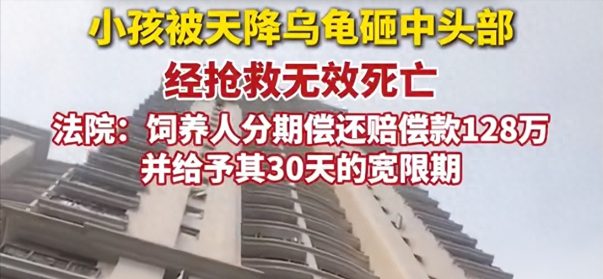 小孩被天降乌龟砸死饲主判赔128万,分期付款也必须赔